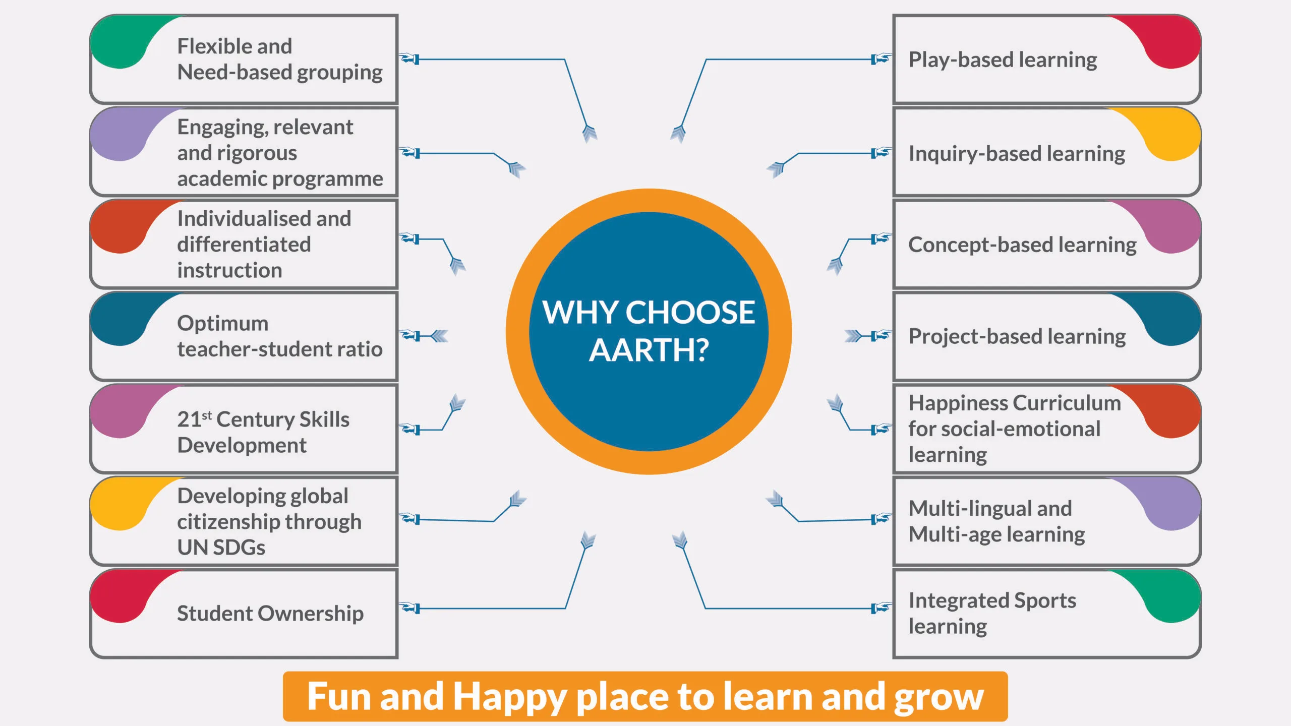 We at Aarth aim to cultivate character, achieve excellence, and build a sustainable future through creativity, critical thinking, communication, collaboration, and real-life connections. Students are empowered to think differently, question convention, and imagine possibilities beyond today. Our curriculum prepares students for an ever-changing world where they will build a better tomorrow. Students are challenged to see issues from multiple perspectives, develop innovative solutions, and communicate their ideas clearly and confidently. Experiential learning opportunities provide real-life context for concepts taught, while a global outlook fosters cultural understanding and awareness of global challenges.
